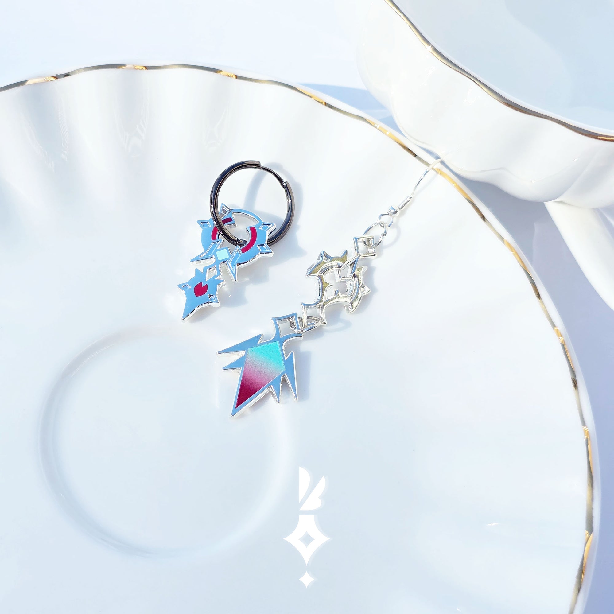 My Genshin inspired jewellery collection. Featuring the elusive Lord of the fortress, Wriothesley! An asymetrical design with a rugged yet refined air!
